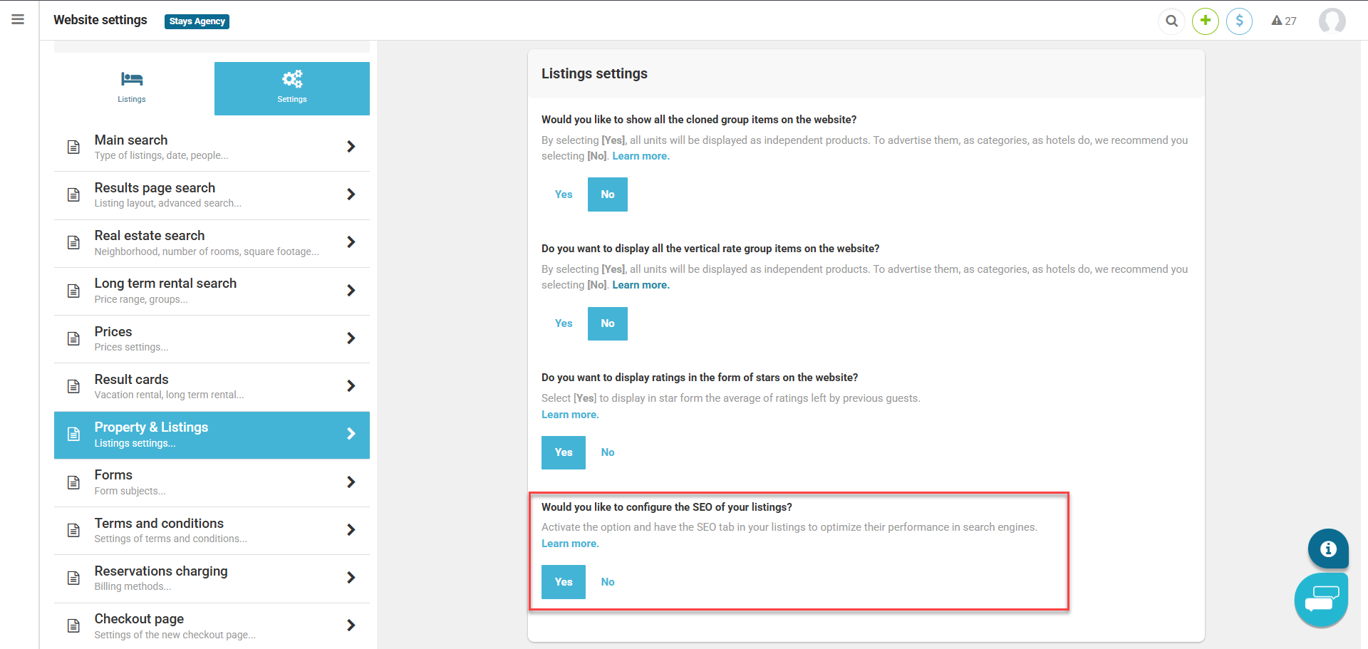 - Under [Listing settings > Would you like to configure the SEO of your listings?];