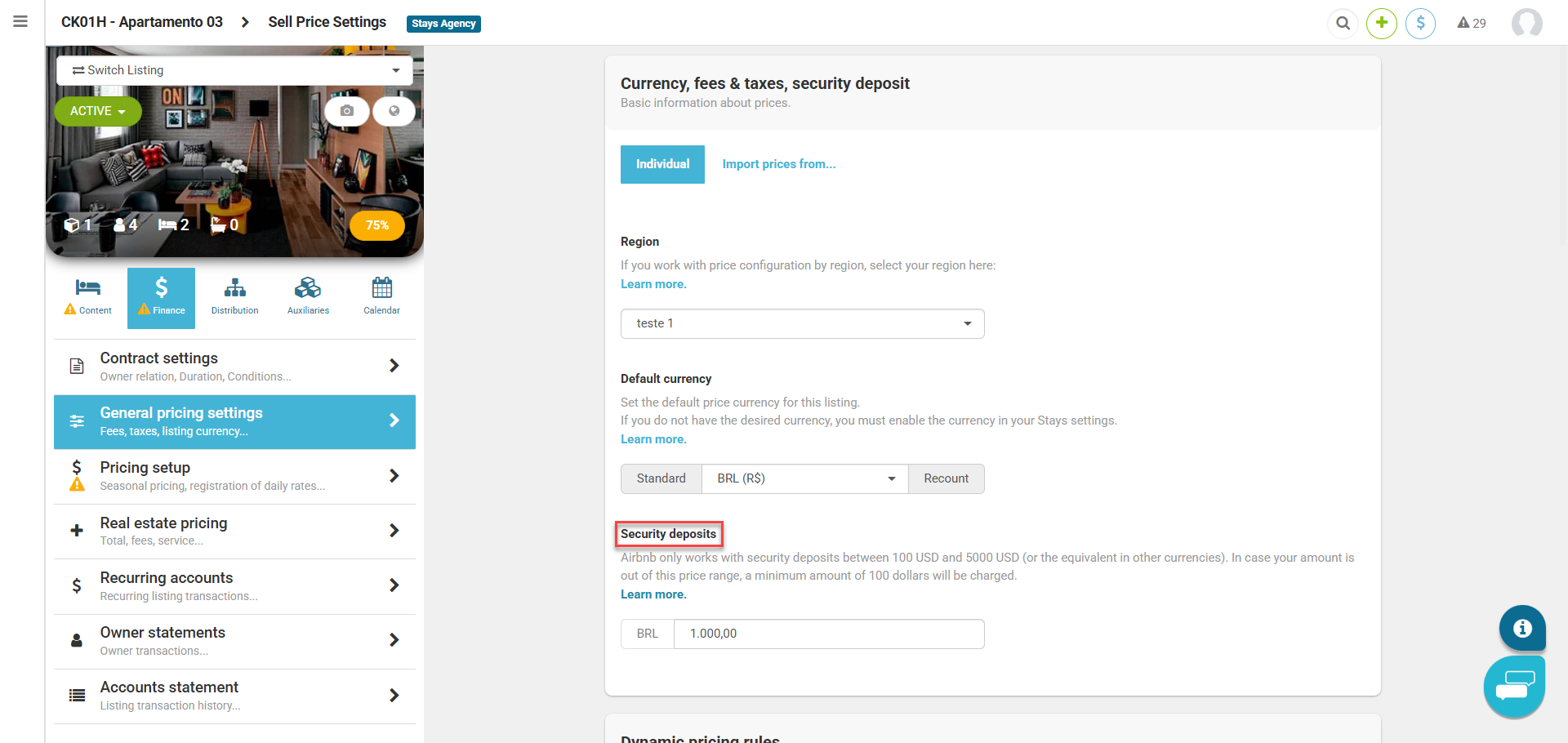 The security deposit's management on Stays is done from the Reservation's Page, where it is possible to register the amounts of receipts and refunds, and here you are able to check out more about this material.