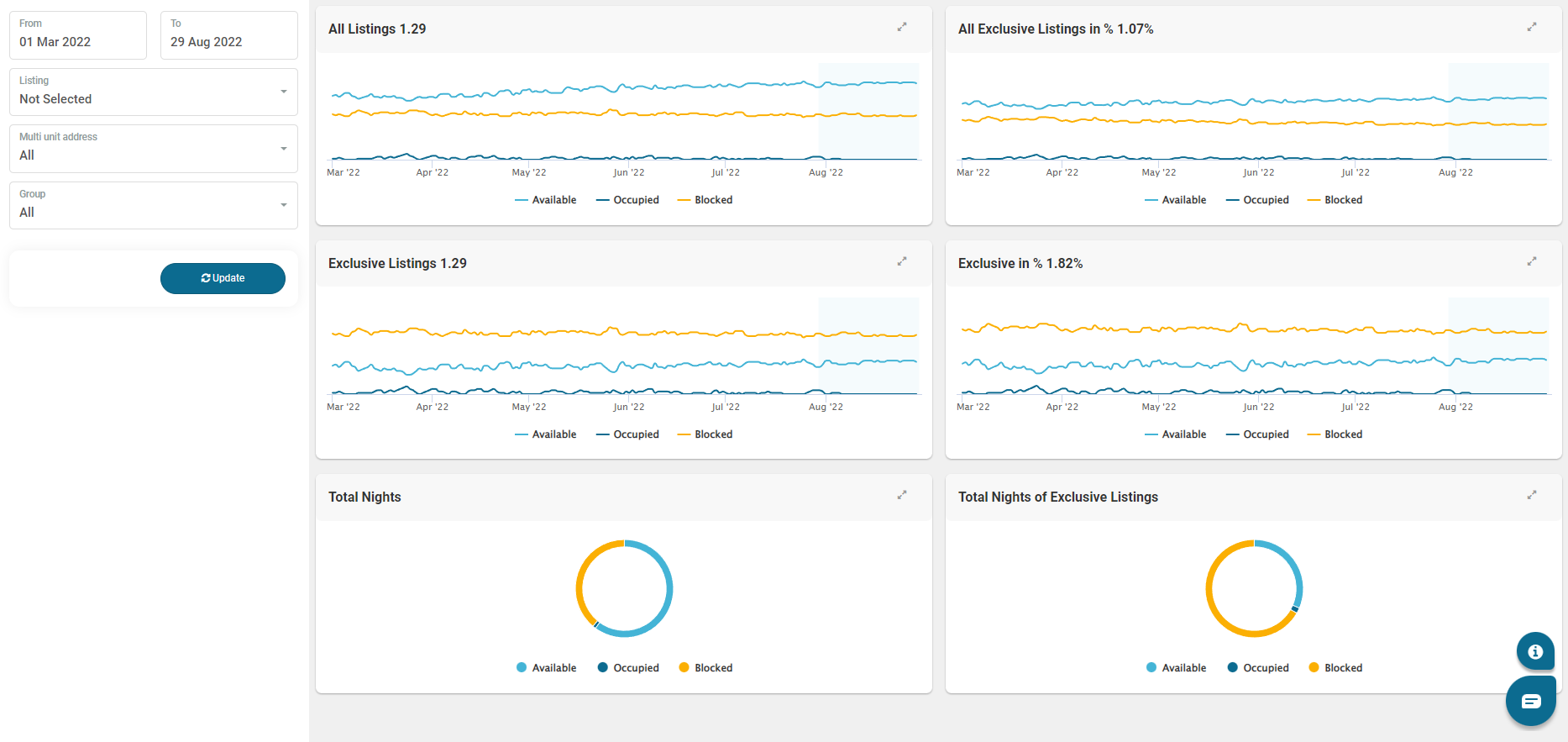 Through the graph, in the main menu, data on available, occupied and blocked listings will be displayed.