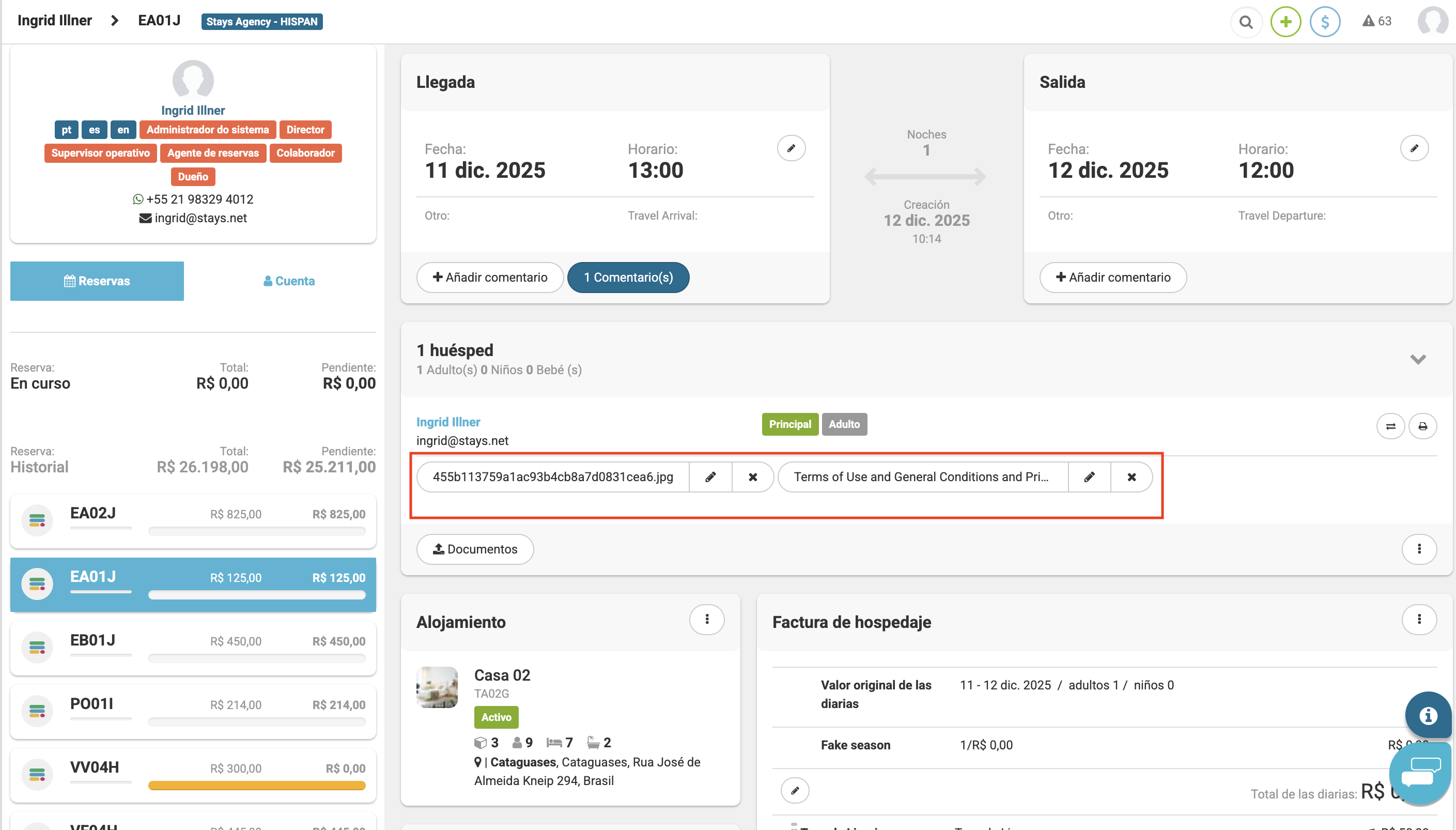 Stays te permite almacenar los documentos del huésped directamente en la página de la reserva. En este espacio, puedes adjuntar imágenes, archivos de texto o documentos en PDF, lo que facilita la organización de la información de la reserva.