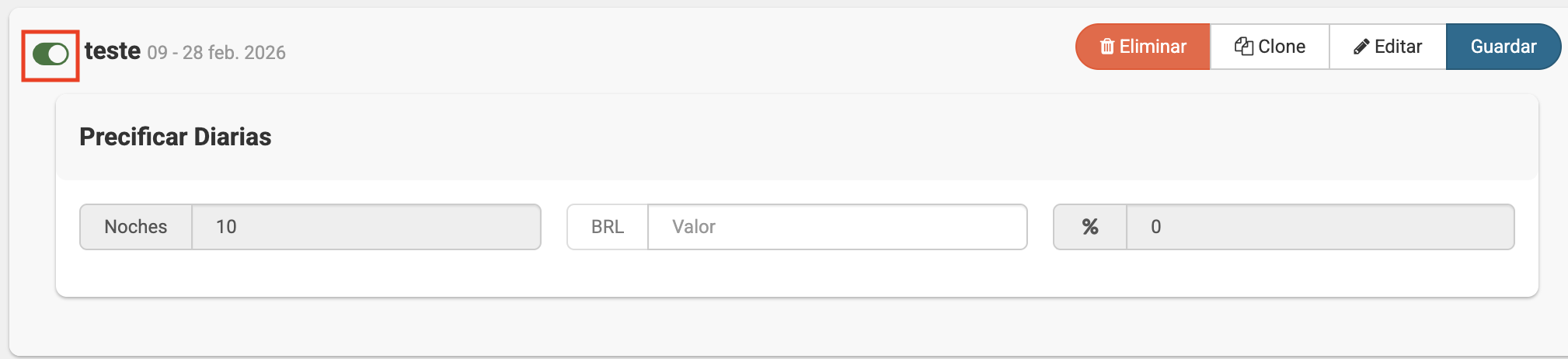 Para crear una regla de precio específica para un período que ya tiene una configuración previa, primero debes desactivar la regla de precio activa y luego seguir los pasos anteriores.