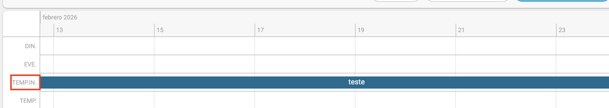Resultado después de crear la regla: el indicador TEMP. IN., un nuevo nivel jerárquico, muestra que el alojamiento tiene una regla propia para este período.
