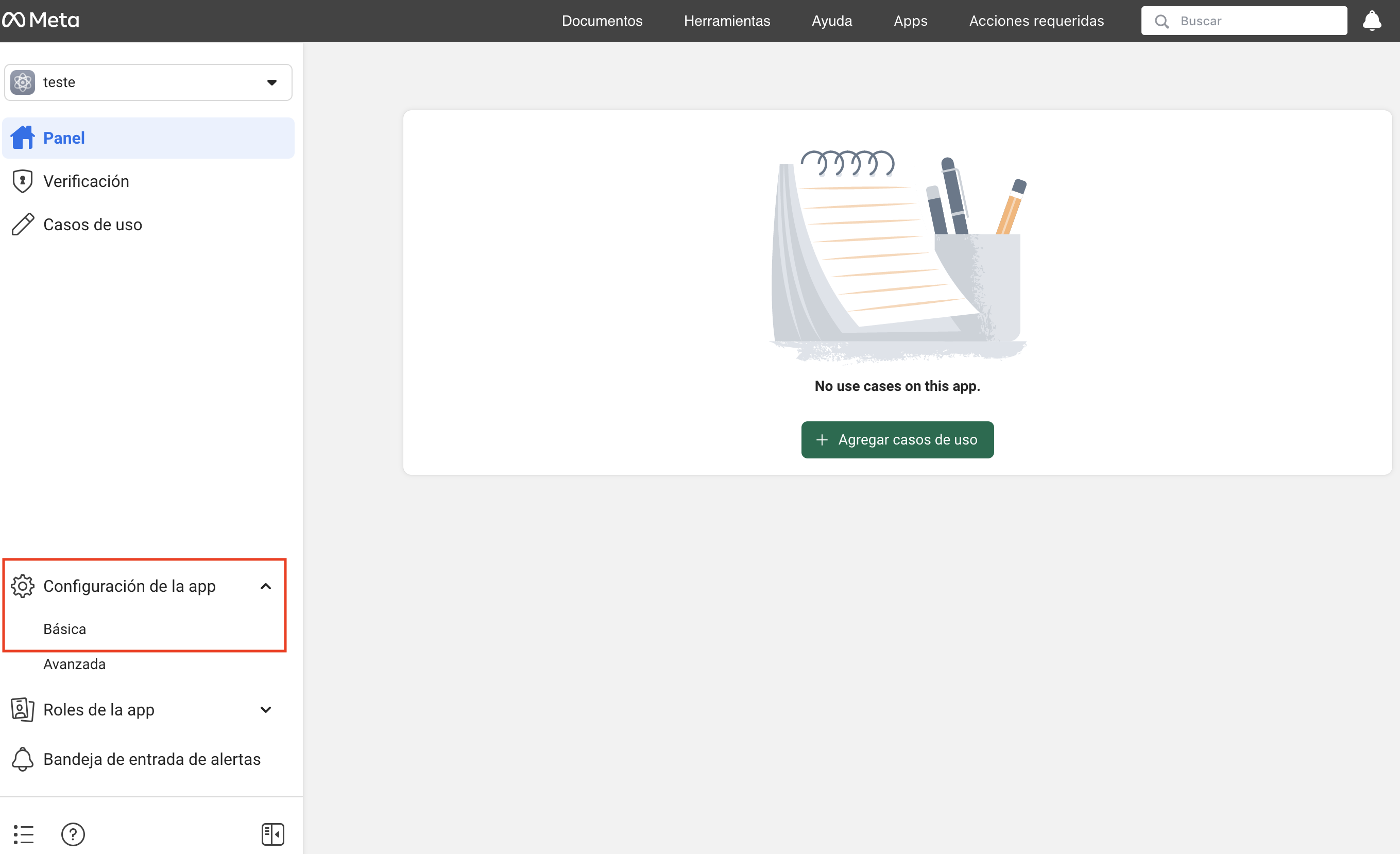 Al acceder al panel, haz clic en [Apps] y luego en [Crear app].