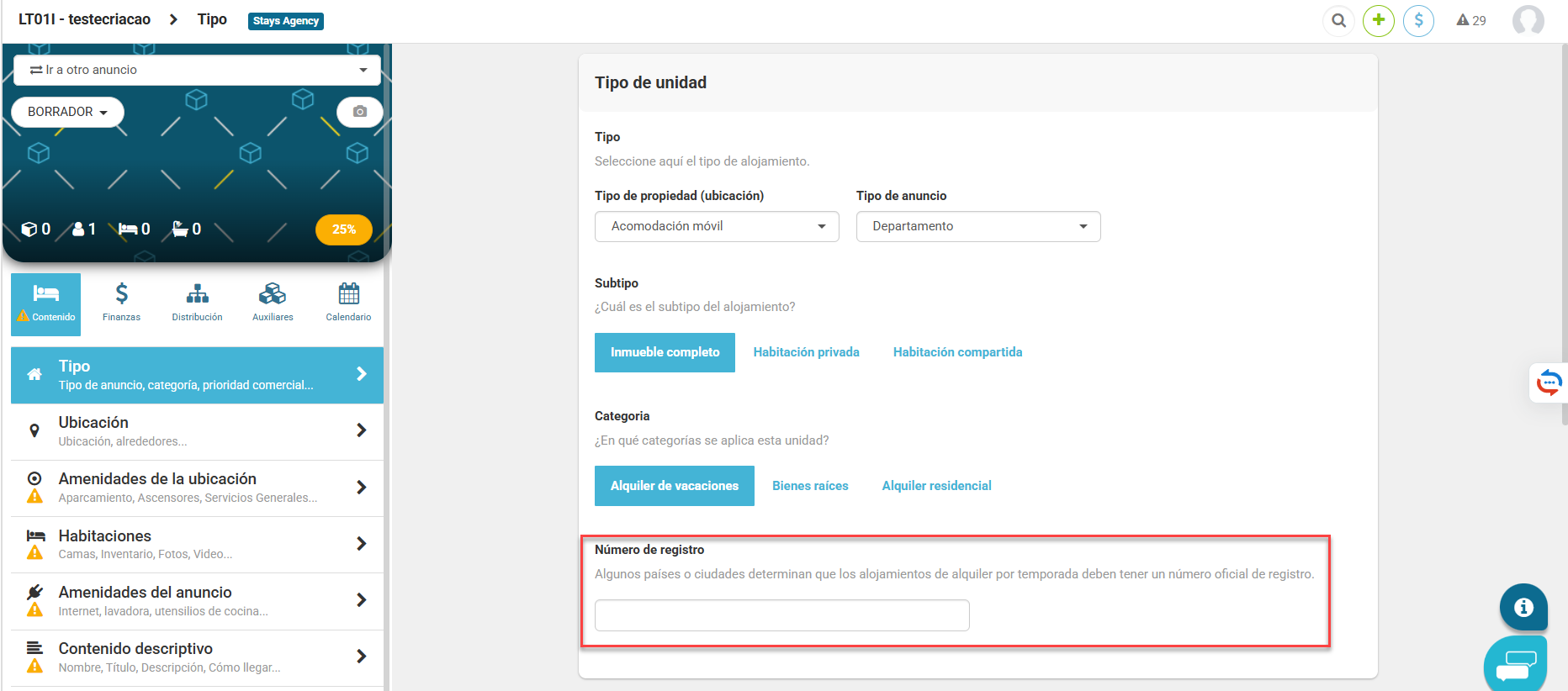Si tu propiedad está en una región que exige este código, puedes añadirlo directamente en Stays siguiendo esta ruta: