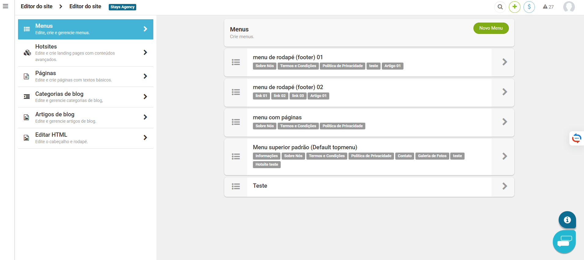 - Acesse [Gerenciar Site e Templates > Editor do site];