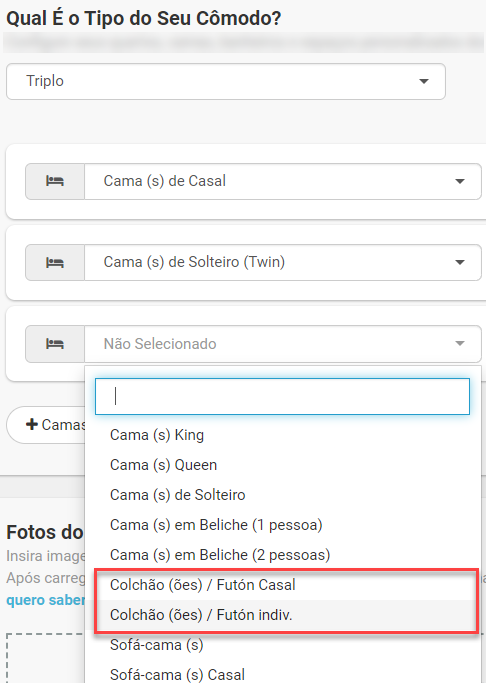 Para ter a capacidade máxima real de hóspedes, você deverá cadastrar como futón em um dos cômodos e, se julgar necessário, adicionar essa informação na descrição do seu anúncio, no campo [Sobre o espaço].