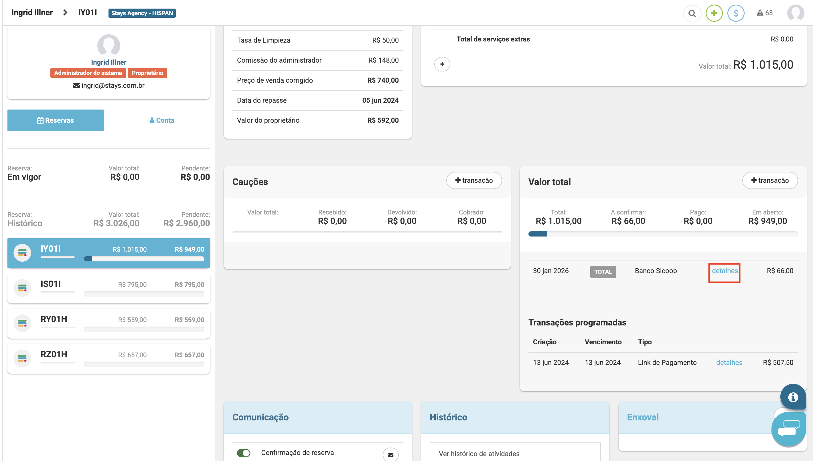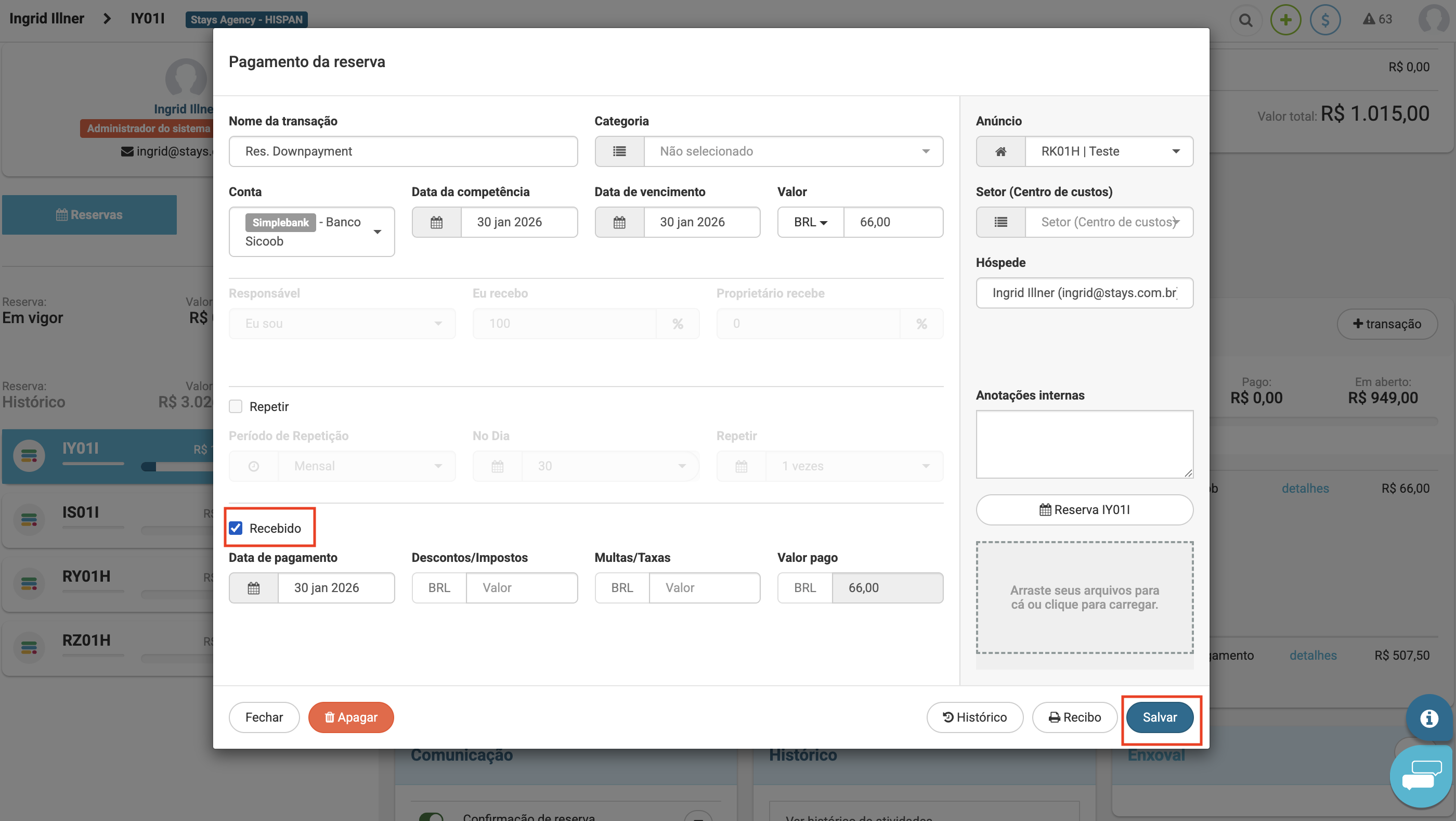 Após você ter recebido o comprovante de depósito ou Pix por parte do hóspede, faça as etapas abaixo para registrar o pagamento: