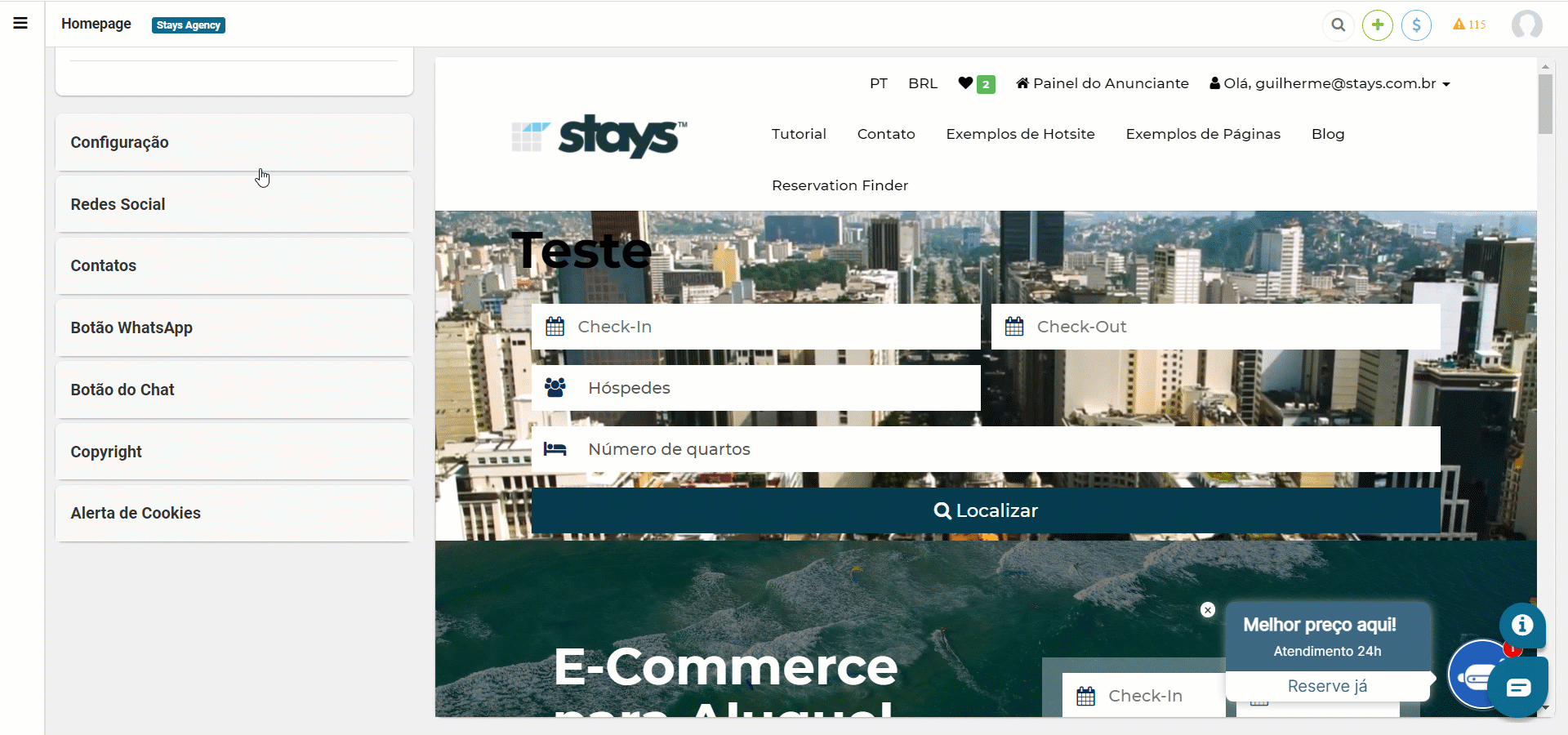 - Acesse o menu [Gerenciar Sites e Templates > Editor do site];