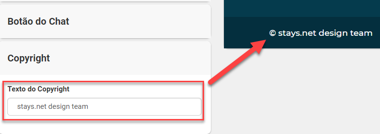 Área para mudar cor de fundo, título, ícones e outras opções gráficas do rodapé. No exemplo, a cor de fundo do rodapé foi alterada.