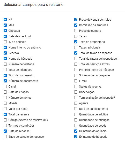 - Valores pagos e recebidos: total pago pelo hóspede, repasse ao proprietário e taxas da administradora.