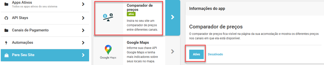 Vá no menu [App Center > Para seu site > Comparador de Preços];